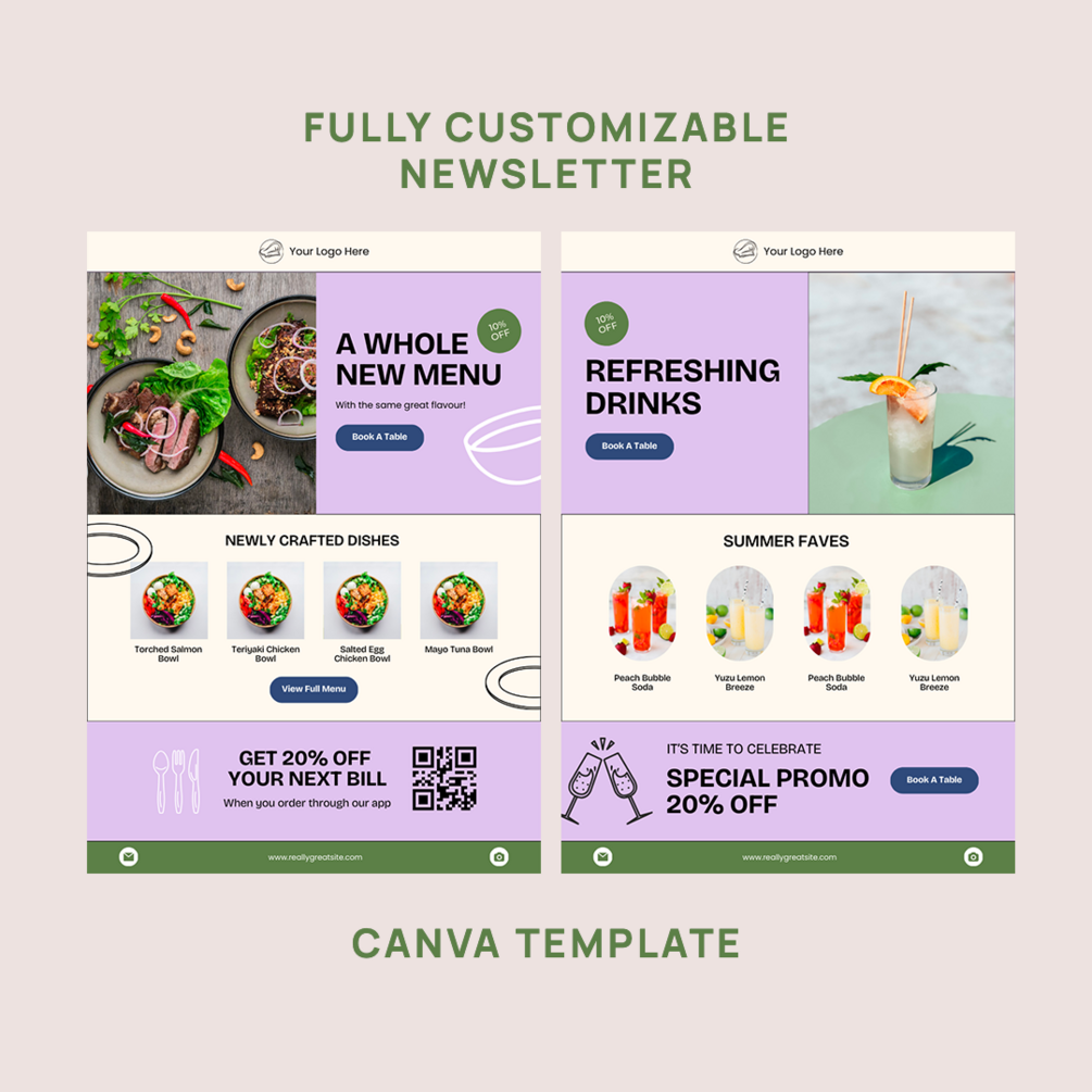 Restaurant Email Newsletter | Canva | Green & Purple | Cafes and Bars